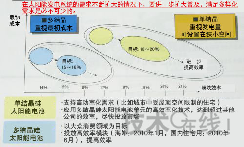 单晶Si型的模块转换效率设想最初为近17%左右,但“为了与其他公司竞争,将力争尽快提高到18~20%”(有本)。