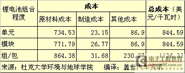 更具体来看,按照锂电池组合程度,可分为锂电池单位、锂电池???、锂电池组/包,其原材料成本、制造成本等具体见表1。