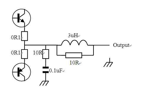在放大器的输出串联一个小线圈电感会增加稳定性。这种做法可以将放大器与关联电容隔离,且不会在音讯频率下引致明显损耗。电感值一般是1到7μH。选用合适的电感值便可避免在某一负载阻抗下出现高频滚降。这里建议采用空心电感来避免出现磁饱和问题。此外,还建议加入一个跨越输出线圈的阻尼电阻以降低输出LC网络的Q系数、过冲和振铃现象。传统上还要采用有几个奥姆的绕线型阻尼电阻器来避免自感。电阻器越低,过冲和振铃的效果便越小。由于输出电流的大小取决于输出功率和负载阻抗。因此应选用1W到5W额定的阻尼电阻器。