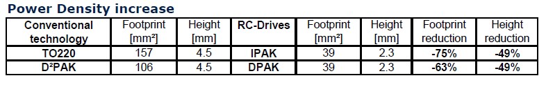从功率密度来说如果选用这种小封装的IPARK产品去取代TO220封装的话,面积可以减少75%,高度可以减少49%。而用这种DPARK封装产品的话,如果去取代D2PARK这种产品,它的面积可以减少63%,高度同样可以减少到49%。