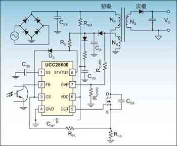 图4:使用UCC28600的65W??榈拇β什馐越峁?。