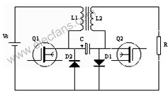 功率双向流动CUK变换器(图2)与传统的单向功率流动CUK变换器不同的是:在原来开关管Q1和二极管D1两端分别反向并联二极管D2和开关管Q2如图3所示。这个电路具有对称性,输入输出电流方向可正可负。右边负载R换为下正上负电压源Vs,左边电压源Vs换为负载R,则功率从右向左倒流[2]。