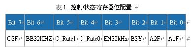 DS3232/DS3234在用户可编程寄存器中提供了一个域,允许用户延长温度更新的时间,从而降低平均电流损耗。两款器件在控制/状态寄存器中提供C_Rate位,用来设置四种不同的温度更新周期。寄存器定义如表1所示。