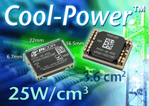 Cool-Power系列在专利零电压开关(ZVS)拓扑技术基础上,使用领先的控制芯片集成技术、先进的平面磁器件技术和高性能功率半导体技术,令产品的开关频率超过1MHz, 效率高达87% 。动态负载的快速瞬态响应降低了对输出大电容的需求,同时产品固有的低噪声和高频特性使得电磁干扰(EMI)性能显着改善。