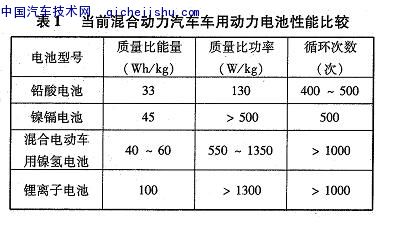 随着人类环保意识的不断增强,石油资源逐年减少,油价逐步攀升,降低汽车污染和节约能源已成为世界各国政府面临的严峻问题。蓄电池技术和氢气的制取、运输、储存、成本等严重制约了电动汽车和燃料电池汽车的发展,因而混合动力汽车应运而生。在混合动力汽车中,由于采用了高功率的能源储存装置(蓄电池、超级电容等)能向汽车提供瞬时的能量而可减小发动机尺寸,提高效率,降低排放和燃油消耗,且可在进行制动和减速时回收能量。铅酸电池质量重,不能快充深放,循环寿命短;锂离子电池具有大电流性能差,价格高和安全性问题,目前还不适于混合动力汽车的发展。镍氢电池具有高比功率、电流充放电大、无污染、安全性能好等特点,广泛应用在混合动力汽车上。