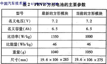 松下最新的方形电池采用新的电极材料,降低了内阻和内压,使可靠性和寿命得到提高,其主要参数如表2所示,其技术特征: