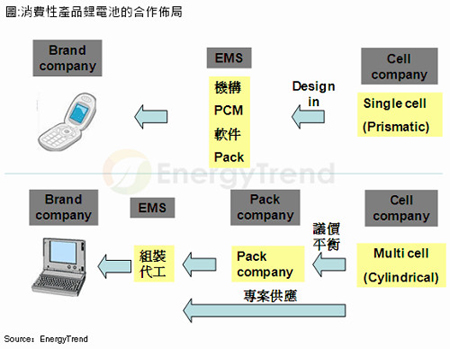 以产品发展竞争来看,EnergyTrend表示,手机以及笔记本电脑一直是锂电池的最大战场,但也因为产业平衡的关系而产生出不同的合作模式。以手机电池来说,中端与低端产品市场,大多以价格为考量,也因此将使得产品定位陷入品质与价格之间的挣扎,而高价位产品,则必须藉由在产品设计初期的共同发展,来设法让零组件产品确保切入供应链,包括正崴等手机电池厂即为一例。