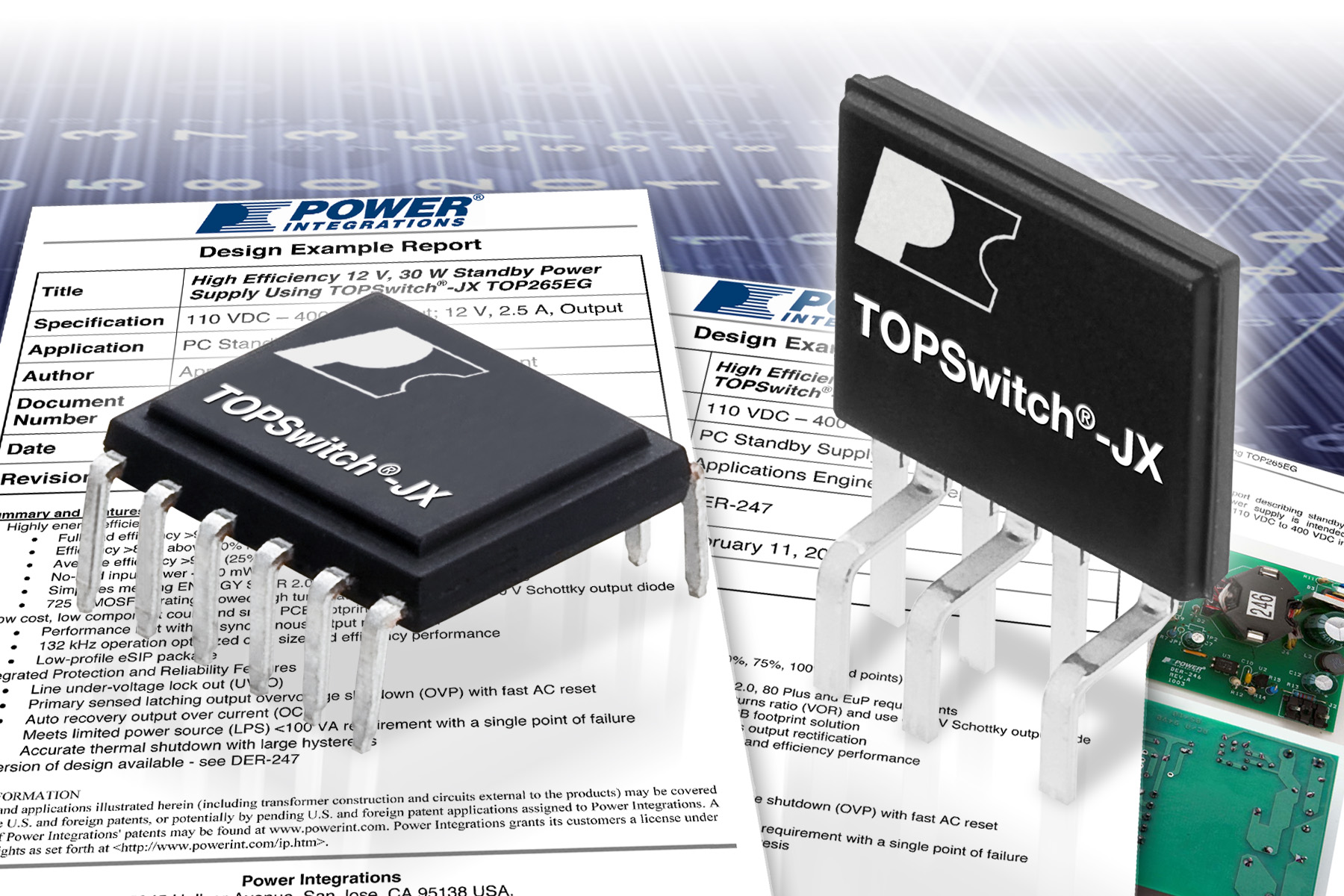 用于高能效电源转换的高压集成电路业界的领导者Power Integrations公司,今日宣布推出使用其新近发布的TOPSwitch-JX IC产品系列设计的两款全新待机电源参考设计。TOPSwitch-JX器件采用多模式控制,不仅可降低电源待机功耗,还能在整个工作负载下实现最高效率。新的参考设计非常适合那些要求满载效率达到90%以上,以便轻松满足严格能效标准的应用,这些标准包括80 PLUS? Gold或Silver PC规范、EuP Lot 6待机标准以及美国加州新的电视机功耗要求。