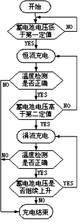 软件设计的流程图如图5所示,在恒流充电阶段,电压传感器产生的电压信号、电流传感器产生的电压信号传送到单片机以后,单片机产生2V的D/A信号给调理电路,在检测到蓄电池两端电压达到第二定值时,充电器进入涓流充电阶段,单片机电路产生较小的D/A值,使蓄电池以较小的电流充电(涓流充电),当检测到蓄电池电压不再上升(或者发生明显的变化)时,单片机电路给出关断充电器信号,蓄电池充电过程结束。