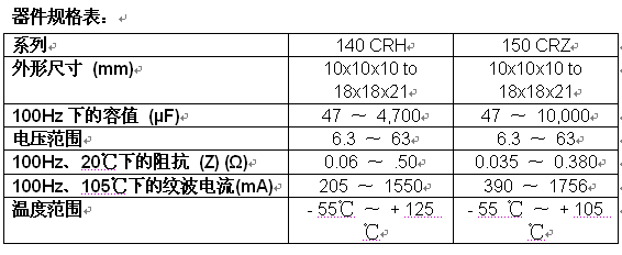 - 150 CRZ电容器具有低至0.035Ω的“Z”阻抗和高达1756mA的纹波电流