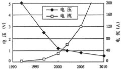 如图1所示,近年来,电子设备所采用的LSI的驱动电压正在逐渐下降,而消耗电流却因为设备功能的多功能化增大了许多,随着转换器的低电压大电流化,以半导体元件为首,变压器、配线等的导通损耗变得愈发明显,往往很难维持高效率,为此人们做了大量的研究工作。例如,在把通信领域中常用的48V输入电压转换成LSI所用的1V低电压时,以往的降压型转换器需要将接通时间比(TimeRatio)设定在1/40以下。在如此短的时间里流经开关元件的巨大脉冲电流是导致效率下降的主要原因。