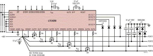 图1a:采用LTC4258实现的符合基本802.3af标准的PSE电路