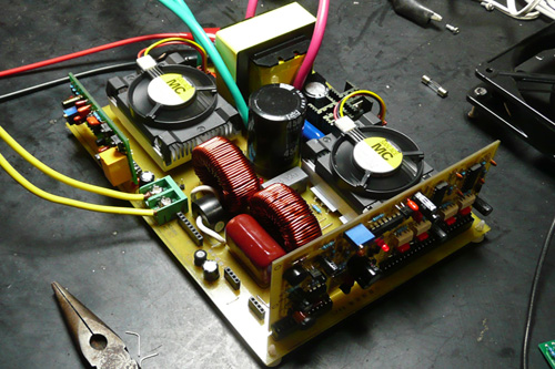 让机器空载工作一段时间,如果没有出现意外,可以把高压保险丝换成2A的,慢慢加大负载,一般是100W,200W,400W,一步一步地加,每加一点让机器老化一段时间,同时要密切注意前级功率管的温升,如果温度过高,要查出原因。