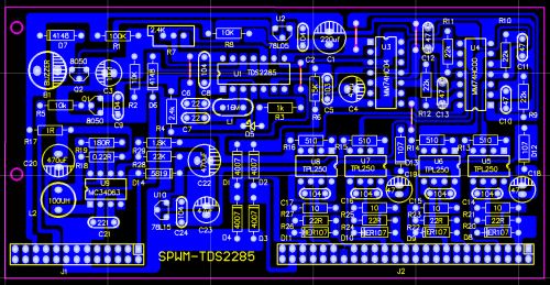 1.SPWM的驱动核心采用了单片机SPWM芯片,TDS2285,所以,SPWM驱动部分相对纯硬件来讲,比较简单,制作完成后要调试的东西很少,所以,比较容易成功。