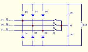 图4三相三开关三电平APFC电路拓扑图