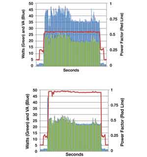 图1描述了一台使用两种不同电源适配器供电的笔记本电脑的功率消耗。即使实际负载一样,从电力线上供应的功率也有很大的不同。这些有价值的信息现在都可以非常容易地获得。统计的结果可以用于调整设备的工作行为。在电压或线路频率上的微小降落都有可能预示着某种供电故障,都会使设备进入?;つJ?。