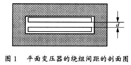 在平面型变压器里,其“绕组”是做在印制电路板上的扁平传导导线或是直接用铜泊。扁平的几何形状降低了开关频率较高时趋肤效应的损耗,也就是涡流损耗。因此,能最有效地利用铜导体的表面导电性能,效率要比传统变压器高得多。图1给出了一个平面变压器的剖面图,并且利用两层绕组间距离的不同,而获得在不同间隙下的漏感和交流阻抗值。