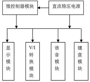 本设计采用单片机作为主要控制部件,通过键盘预置输出电流值并采用液晶模块实时显示。整个系统硬件部分由微控制器模块、电压-电流转换??椤⒓棠?椤⑾允灸?椤⒅绷魑妊沟缭茨?楹陀镆籼崾灸?樽槌?。系统结构框图如图1所示。