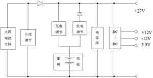 电源分系统由一次和二次电源组成,一次电源母线为全调节型直流母线系统,经调节的直流母线不论卫星进入光照期还是在阴影期,电压都稳定在27V±1V范围内。