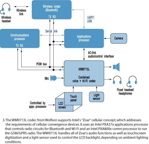苏格兰的Wolfson微电子公司从事硬件音频编码解码器的制造,该公司新产品开发部的副总裁PeterFrith指出,给手机加入回放MP3的功能,或者用于下载音乐,或者作为高质量的铃声,意味着用户已经希望在手机中看到一个相对高保真的回放系统。因此,手机制造商目前期盼出现功耗甚至更低的便携式DAC,且能够达到100dB的信噪比。