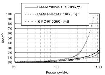 如同图4中显示的Rac特性,LQM系列产品能够充分抑制Rac。同时,图2的电流-感值偏执特性中显示,它在电流通电时也能确保高感值,拥有良好的电力变换效率特性。这些性能能够实现手机在待机状态下的高电力变换效率,对延长电池寿命做出贡献。