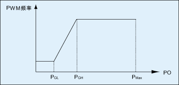图4显示了非导通时间调制的基本原理。当负载改变时,开关频率将连续降低或增加,开关频率与输出功率的关系如图5所示。低负载或空载时这种连续调变降低开关频率的方式除了可以有效降低能量损失外,还可以避免前两种方法中输出电压突升或突降的问题。