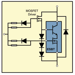 当一个ESBT同外置MOSFET和二极管/电阻配对的时候,整个电路看起来像一个3端器件,经驱动后能达类似IGBT或功率MOSFET的工作状态。ESBT的关断能量比IGBT低很多,能实现高效设计,并非常适合高频率、高压逆变器设计。