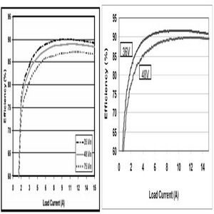 图3 正常输出电压下效率与负载电流的关系曲线(包括最小、正常和最大输入电压情况,25°C)