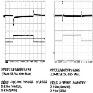 从动态响应的图形对比中可以看到,无论是输出过冲,还是恢复时间,MAX5051??槎季哂忻飨缘挠攀?。