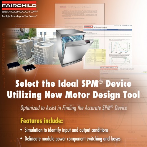 飞兆半导体提供完整的SPM封装产品系列,推动高能效变频马达的发展,并实现高能效的设计。运动控制设计工具 可以配合和支持SPM系列的所有器件,为运动控制设计工程师提供飞兆半导体MotiON-SPM封装的功耗和温升的有效计算方法。