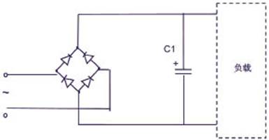 图1是典型的电子产品电源部分简化电路,C1是与负载并联的滤波电容。在开机上电的瞬间,电容电压不能突变,因此会产生一个很大的充电电流。根据一阶电路零状态响应模型所建立的一阶线性非齐次方程可以求出其电流初始值相当于把滤波电容短路而得到的电流值。这个电流就是我们常说的输入浪涌电流,它是在对滤波电容进行初始充电时产生的,其大小取决于启动上电时输入电压的幅值以及由桥式整流器和电解电容其所形成的回路的总电阻。
