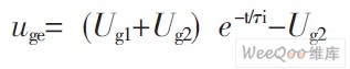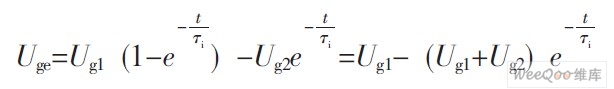 二极管D1导通时, 若Uge为所加的反向电压值(可记为-Ug2, 正向电压记为+Ug1), 集电极电流iC=0, Uce=U2。开通后, U1向Cgc、Cge充电, 此时Uge可写成: