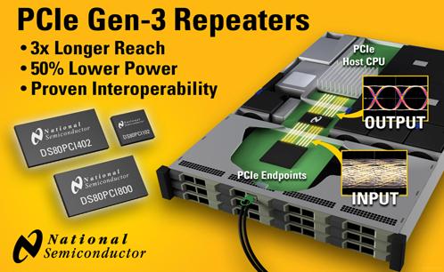 美国国家半导体公司宣布推出一系列全新的第三代(8Gbps)PCI Express®(PCIe)中继器,它实现了无与伦比的信号调节性能且功耗极低,因此特别适用于数据中心服务器和存储系统。