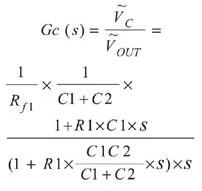 为了实现系统的抗干扰能力,Buck变换器除了主功率部分以外,还会有相应的负反馈控制电路,补偿网络是反馈控制电路的一部分。补偿网络的加入可以提高环路的低频增益,从而提高抗干扰能力;同时补偿网路使系统拥有足够的相位裕度,从而保证系统处于稳定的工作状态,不会振荡。图2中黄色框内的部分就是补偿网络部分,补偿网络中包括 R1,C1,C2和Rf1(注:Rf2在环路分析中不起作用),补偿网络的传递函数可以表示为: