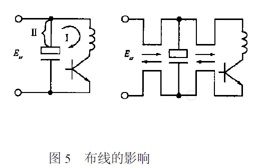 流过开关大电流的导线应尽量短,并且不跟其它线交连。降压型开关稳压电源的续流二极管或者升压型的开关三极管的接地端应以最短的引线直接与输出电容的地端相连。图5表示了布线的影响,尖峰干扰通过环路I辐射,故构成这一环路的各段连线的感性耦合必须最小,电容器的引线要短,以减小引线电感。