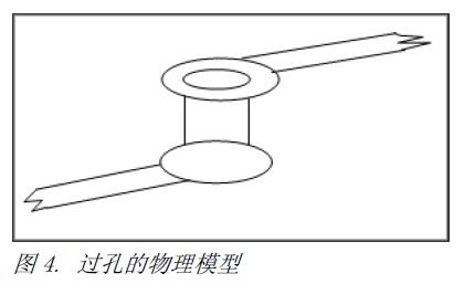 接地层确定后,将所有的信号地以最短的路径连接到地层,通常用过孔将顶层的地线连接到地层,需要注意的是,过孔呈现为感性。过孔的物理模型如图4所示。图5所示为过孔精确的电气特性模型,其中Lvia为过孔电感,Cvia为 过孔PCB焊盘的寄生电容。如果采用这里所讨论的地线布局技术,可以忽略寄生电容。一个1.6mm深、孔径为0.2mm的过孔具有大约0.75nH的电 感,在2.5GHz/5.0GHz WLAN波段的等效电抗大约为12Ω/24Ω。因此,一个接地过孔并不能够为RF信号提供真正的接地,对于高品质的电路板设计,应该在RF电路部分提供尽 可能多的接地过孔,特别是对于通用的IC封装中的裸露接地焊盘。不良的接地还会在接收前端或功率放大器部分产生辐射,降低增益和噪声系数指标。还需注意的 是,接地焊盘的不良焊接会引发同样的问题。除此之外,功率放大器的功耗也需要多个连接地层的过孔。