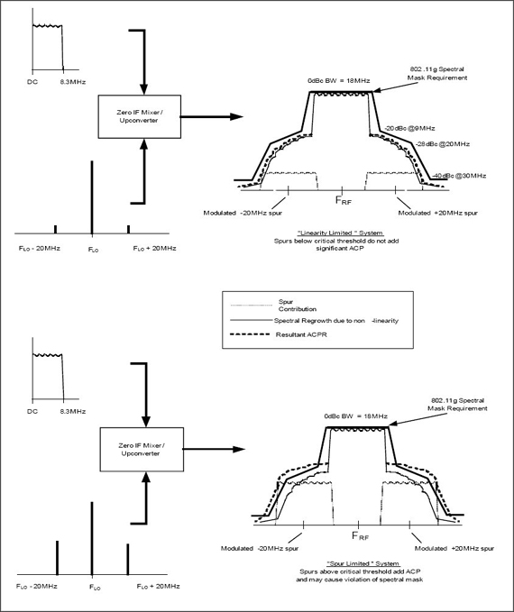 图7.802.11a/b/g频谱模板和杂散造成的性能下降