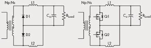 从拓扑的角度来看,同步整流器的传导损耗和开关损耗都更低,能够提高这些转换级的效率,因而是开关模式电源次级端的基本构建模块,在服务器电源或电信整流器等低压及大电流应用中非常流行。如图1所示,它取代了肖特基整流器,可使电压降变得更小。从器件角度来看,过去十年中,功率MOSFET晶体管的进展巨大,催生出了新颖的拓扑和高功率密度电源。20世纪早期平面技术问世之后,中低电压MOSFET迅速被开发出来,利用沟槽栅技术来大幅提高性能。沟槽栅MOSFET是中低电压电源应用的首选功率器件,其把一个栅极结构嵌入到精心蚀刻在器件结构上的沟槽区域中。这种新技术可以提高沟槽密度,并无需JFET阻抗元件,因此能够使特征导通阻抗降低30%左右。当MOSFET的导通阻抗与漏极电流的乘积小于二极管正向电压降时,同步整流的能量损耗降低。