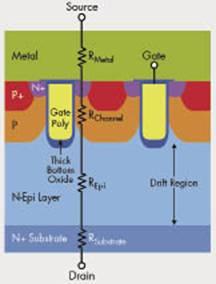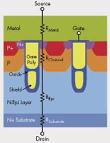 这种方案不仅有助于减小栅-漏叠加电容CGD,还能改善漂移区阻抗。此外,它也有利于降低导通阻抗与栅极电荷,因为现在可以一方面通过薄栅极氧化层来获得更低的Vth与导通阻抗,同时又还可以在沟槽底部采用加厚氧化层以获得最低的CGD?;褂幸恢旨际蹙褪遣捎玫绾善胶饣虺督崞骷峁?。它最初是针对高压器件开发的,现在也可用于低压器件。利用电荷平衡方案,可以在漂移区获得两维电荷耦合,因而能够在漂移区采用更高的掺杂浓度,最终降低漂移阻抗。相比前代技术,这种新型中压功率MOSFET不仅在特征阻抗方面有大幅度改进,同时其原本相当出色的开关特性也得到进一步提高。