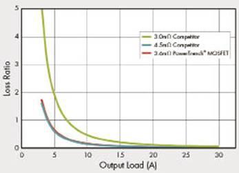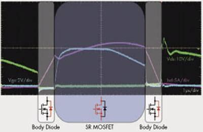 除了RDS(ON)和QG之外,同步整流结构中的其它参数,如体二极管反向恢复、内部栅极阻抗以及MOSFET的输出电荷(QOSS),现在也变得更具相关性。在开关频率和输出电流较高时,这些损耗元件的重要性便更为明显。飞兆半导体的中压MOSFET产品现在开始针对二极管反向恢复以及输出电容的最小化进行优化。