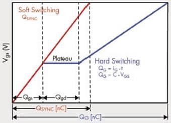 利用已知的电阻值,可通过下式求得QSYNC,这样就可以更准确地估算出栅极驱动功耗。同步整流中,QSYNC较小,器件的性能也较好。如图7所示,同步整流的功率MOSFFET的栅-源电压上无平坦区。