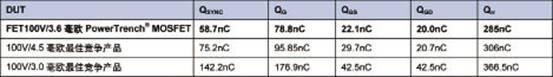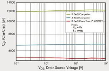 图8 100V栅-源电容/3.6毫欧PowerTrench MOSFET与竞争产品的比较
