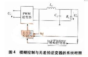 无差拍控制(deadbeat control)是一种基于电路方程的控制方式,其控制的基本思想是将输出正弦参考波等间隔地划分为若干个取样周期,根据电路在每一取样周期的起始值,用电路理论算出关于取样周期中心对称的方波脉冲作用时,负载输出在取样周期末尾时的值。这个输出值的大小,与方波脉冲的极性与宽度有关,适当控制方波脉冲的极性与宽度,就能使负载上的输出在取样周期的末后与输出参考波形相重合。不断调整每一取样周期内方波脉冲的极性与宽度,就能在负载上获得谐波失真小的输出。因此,即使在很低的开关频率下,无差拍控制也能够保证输出波形的质量,这是其它控制方法所不能做到的,但是,其也有局限性:由于采样和计算时间的延迟,输出脉冲的占空比受到很大限制;对于系统参数的变化反应灵敏,如电源电压波动、负载变动,系统的鲁棒性差。