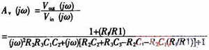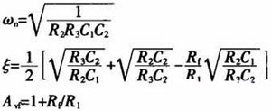 通过上式可以求出该有源滤波器的一些参数,如自然角频率ωn阻尼系数ξ和闭环增益Avf等: