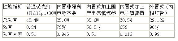 也就是说,直接替换的结果是效率大大降低,对于国产电感镇流器,效率只有56.2%。只比普通荧光灯节电6.8W。