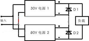 快恢复二极管D1、D2为串联方式中的保护器件,要求D1、D2反向耐压大于两倍的电源额定输出电压,电流大于两倍的电源额定输出电流,正向导通压降应尽量小。由于是采用两个电源??榇钩傻缭聪低常谝桓鲇邢拗频姆庾澳谕瓿缮杓朴幸欢ɡ?,有的模块串联方案采用两个封装完成设计,即设计两个30V 的独立电源,再进行外部串联构成+60V电源系统。本设计通过合理配置空间,在电源上下盒盖中各安装一个DC-DC???,以金属壳体作为散热手段,采用紧凑的设计和安装技术将整个电源系统封装在一个较小的空间内,使整个电源体积、重量大大减小,截面积仅为6×9英寸2,实现了小体积大功率的一体化电源系统设计。
