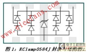RClamp0584J是这种集成式TVS?;て骷囊桓鲎罴咽道?图1)。该器件是RailClamp系列高速接口?;げ返淖钚鲁稍薄U庵炙南?、5V工作电压?;て骷男阅艹隽薎EC 6100-4-2 level 4对静电瞬变的?;ひ蟆M?同时也明确显示,这款器件采用了独特的封装设计。“穿通型(Flow through)”封装一词来自升特公司,这种封装允许走线直接穿过保护器件,因此最大限度地减小了由于平衡差分线对的中断或失配所导致的额外寄生电感与电容。