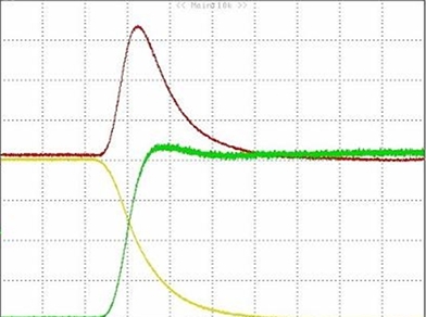 开关损耗其实也是一个很重要的指标。从下图可以看到,导通瞬间的电压电流乘积相当大。一定程度上决定了器件的开关性能。不过,如果系统对开关性能要求比较高,可以选择栅极电荷QG比较小的功率MOSFET。