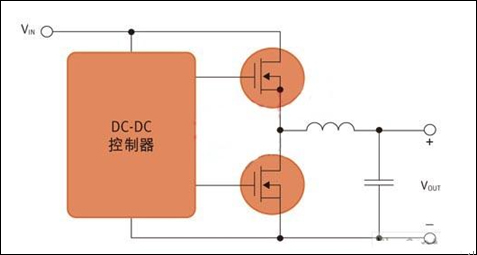 从定义上而言,这种应用需要MOSFET定期导通和关断。同时,有数十种拓扑可用于开关电源,这里考虑一个简单的例子。DC-DC电源中常用的基本降压转换器依靠两个MOSFET来执行开关功能(下图),这些开关交替在电感里存储能量,然后把能量开释给负载。目前,设计职员经常选择数百kHz乃至1 MHz以上的频率,由于频率越高,磁性元件可以更小更轻??氐缭粗械诙匾腗OSFET参数包括输出电容、阈值电压、栅极阻抗和雪崩能量。