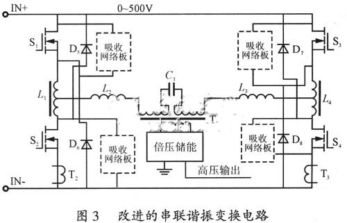 改进的串联谐振变换电路具有电流、电压限制的双斜率输出特性,电感L2、L3是谐振电感。C1为谐振电容。